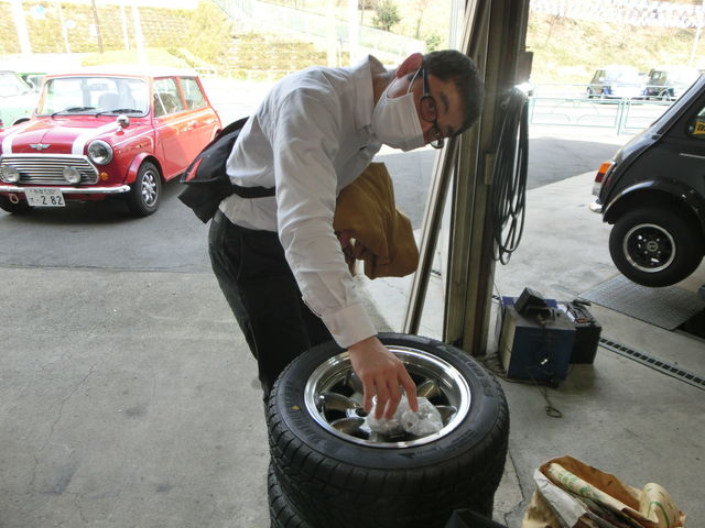 まずは鈑金工場へ行く前にタイヤを交換します。