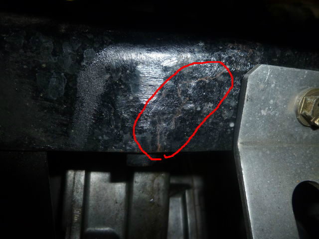 サブフレームのステディー取り付け部にクラックが入り、