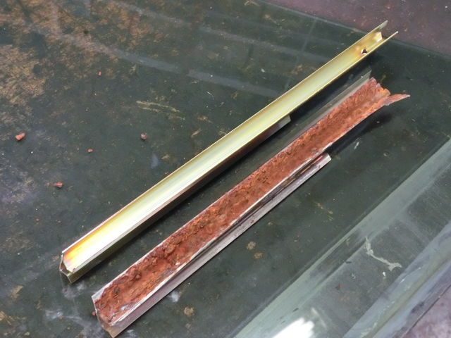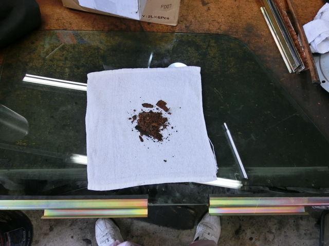古いガラスはウェザーストリップを切って外しちゃいます。