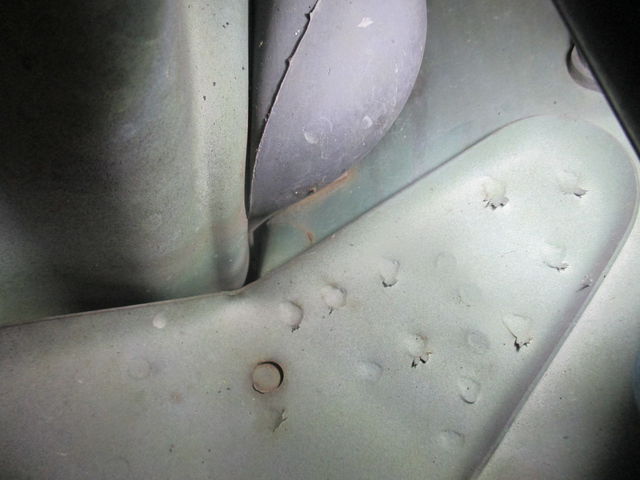 左側インナフェンダー先端部のクラック、2cm。