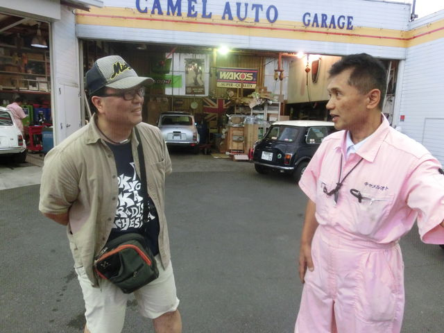 一人の男性がマニュアルのミニを覗きこんでおります・・。