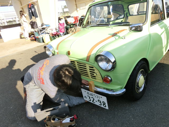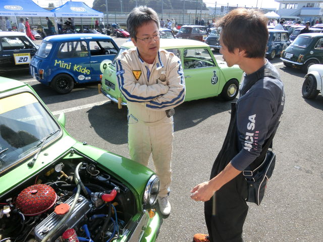 緑の92年ツインキャブクーパーの寺井さんも今日がデビュー走行。14番ゲット