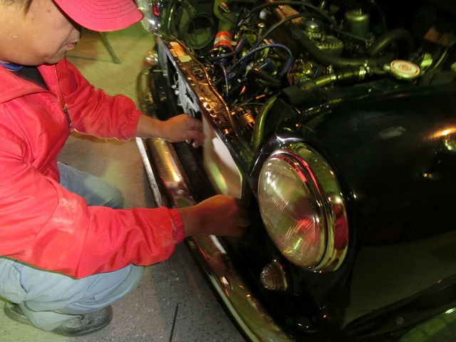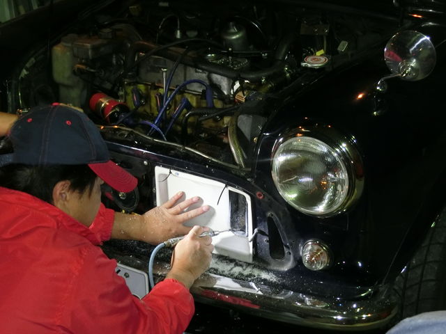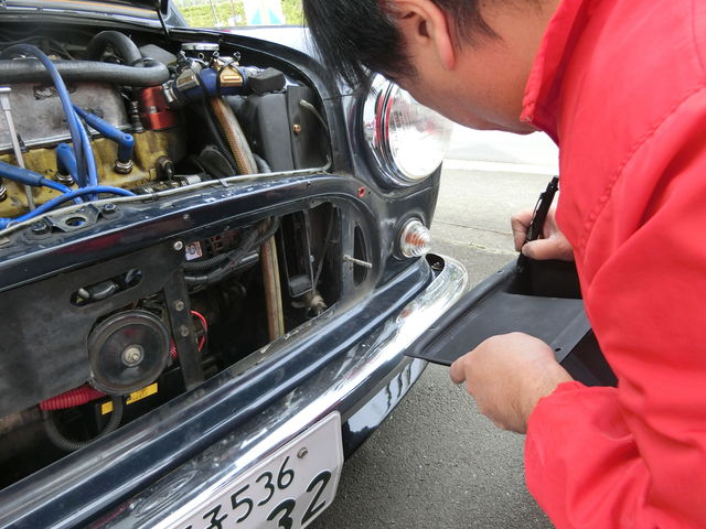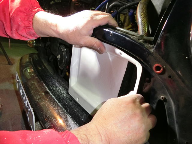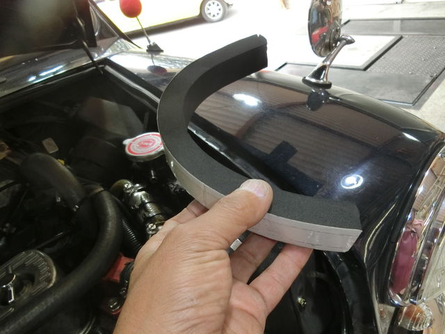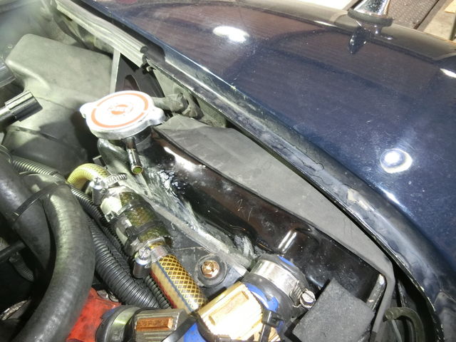 ラジエターとフェンダーの隙間をしっかり埋めて電動ファンの効率が上がるようにします。