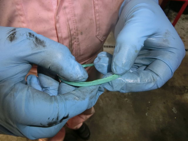 『柔らかいパッキンに対して強く締め付けすぎてフィルターケースの縁があたる部分に過大な剪断応力が掛かり、パッキンの変位限界を超えて引き千切れてしまったというのが今回のオイル漏れの原因だった・・・・・』