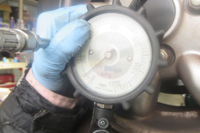 フロント左側のタイヤの空気圧が減っています。