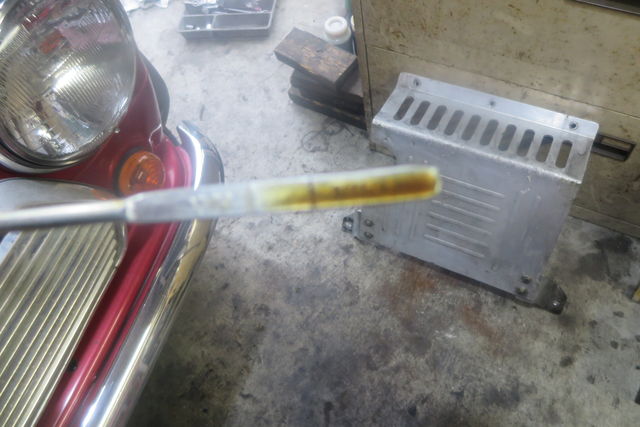 エンジンオイルのチェックです。