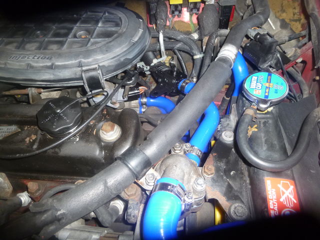 青いシリコンホースになり、エンジンルームも明るくなりましたね !