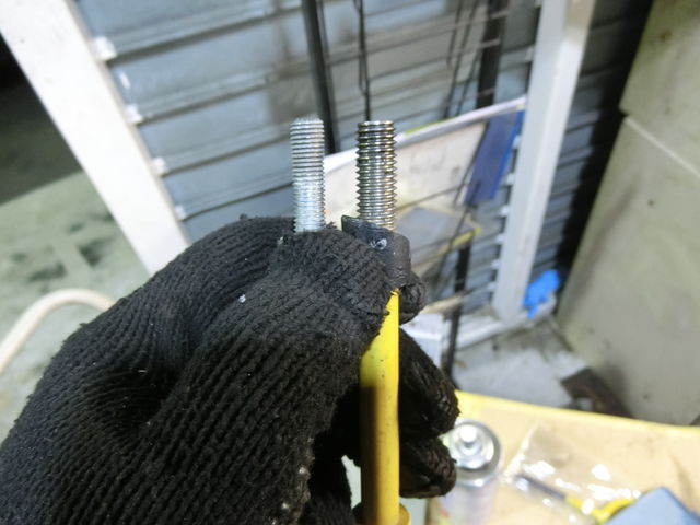 一つは元からサブフレーム開いている穴を使いますがもう一つはドリルで穴開けます。