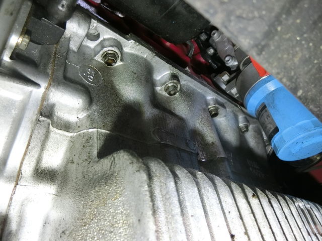 ミッションケースとエンジンブロックの間からは相も変わらずオイル滲んでいます。