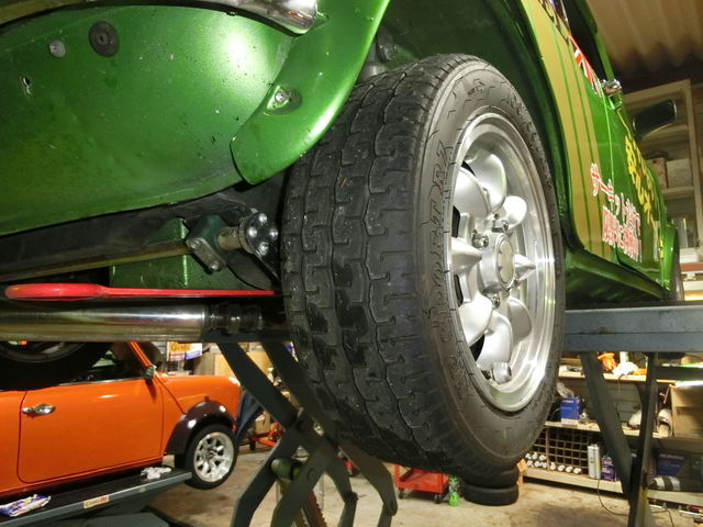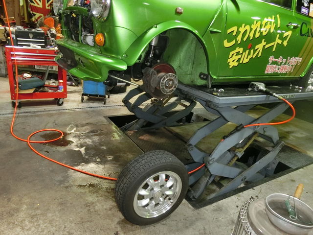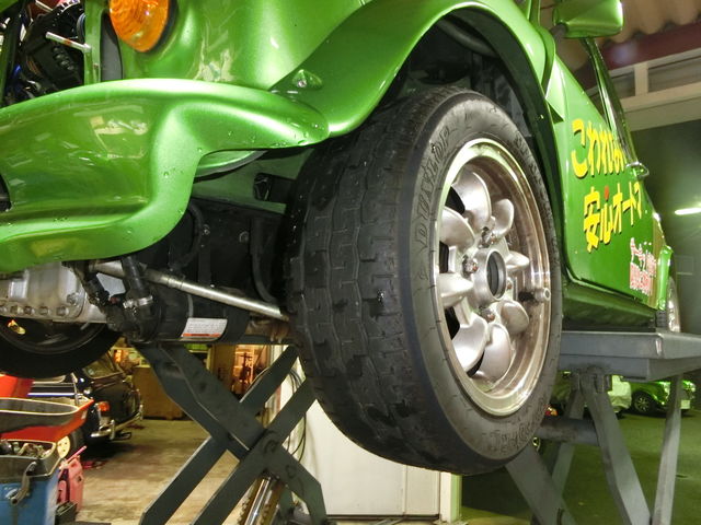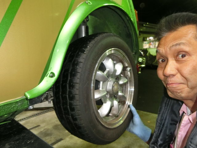 さてと、リフトアップされたワークスATのタイヤを見ると