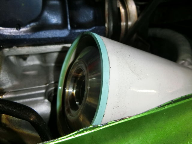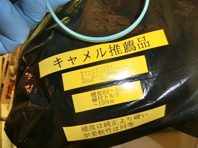 レース前のオイル交換で、硬度82hsのオリジナルフィルターパッキンを使ったので