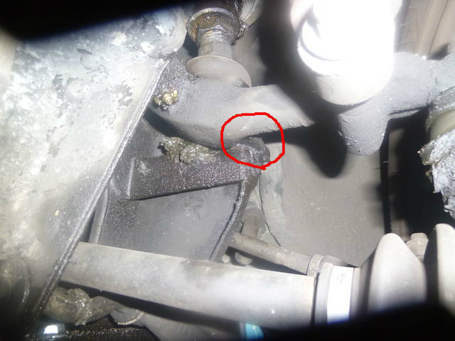点検すると、左フロントのサブフレームマウントが剥離してました。