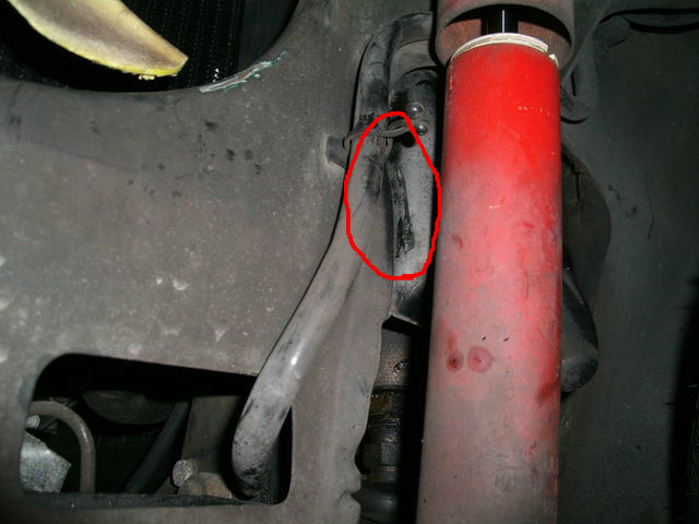 この隙間の分、サブフレームが動くとすると、ボディーと接触してる