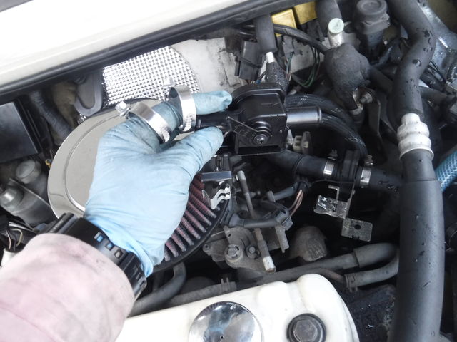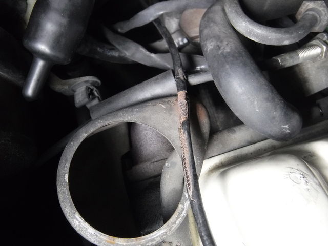 インテーク回りが外れている間に、ヒーターバルブのワイヤーを交換してしまいましょう。