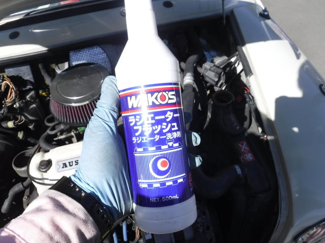 ワコーズのラジエーターフラッシュを入れて、エンジンを回します。