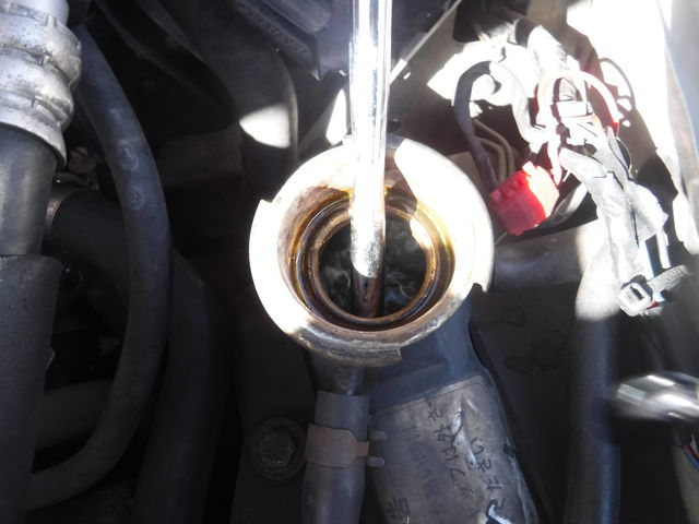 古い冷却水をラジエーターから吸い出しました。