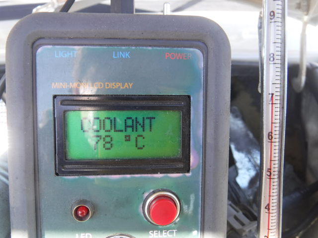 水温センサーの温度が78℃に達した時温度計は急上昇し始めました。