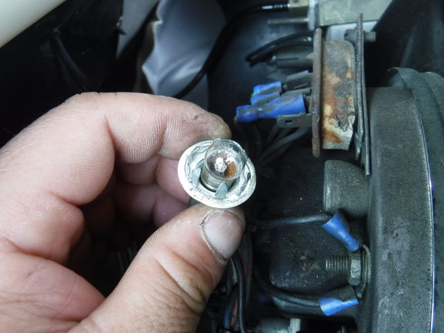 センターメーターを外してウインカーインジゲーターのバルブを確認すると・・・・、
