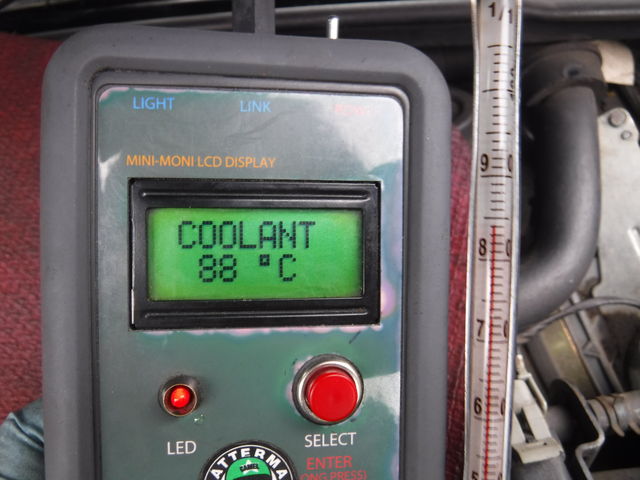 水温センサーの温度は88℃になりました。
