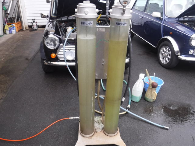 クーラントを入れて水路洗浄は完了です。
