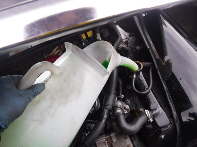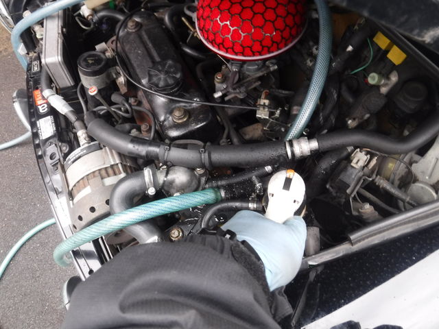 ラジエーター内のクーラントを抜いていきます。