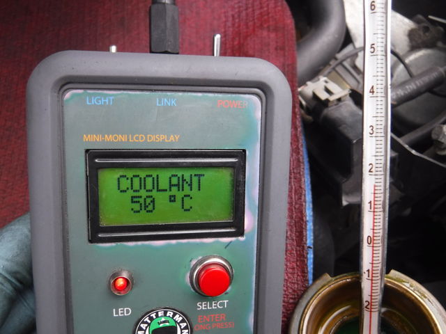 水温センサーの温度が50℃の時に、温度計は17℃です。