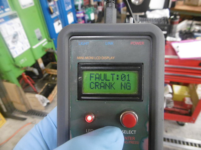 ECUチェックでは、今回もクランク角センサーのフォルトがありました。