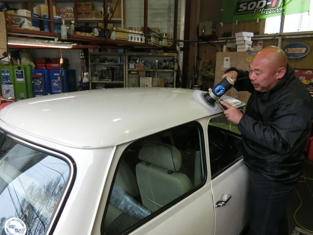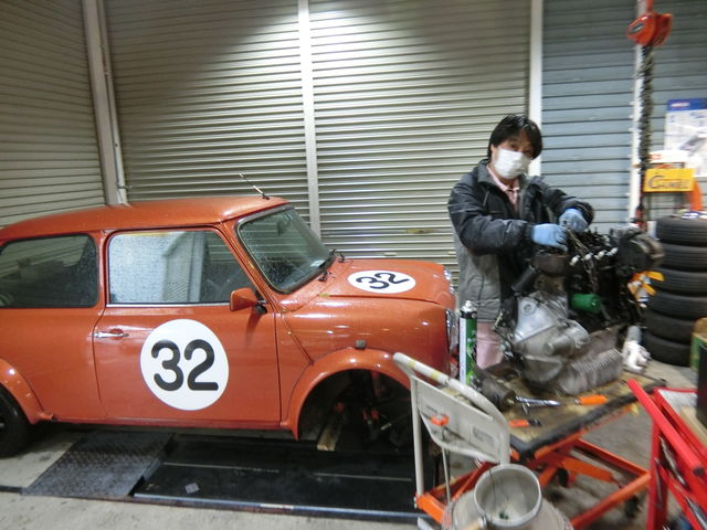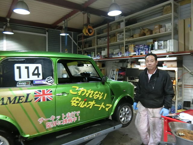 旧ピットではKMM様のミニがピッカピカに磨かれています♪