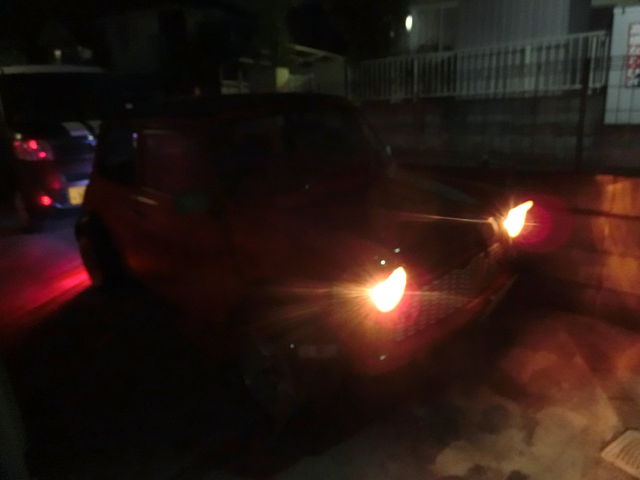降りて道中最初のコンビニで朝食調達して店から出ると赤いミニ発見。