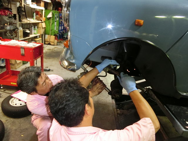 ボールジョイント交換終わりスイベルハブ取り付け、作業に入ります