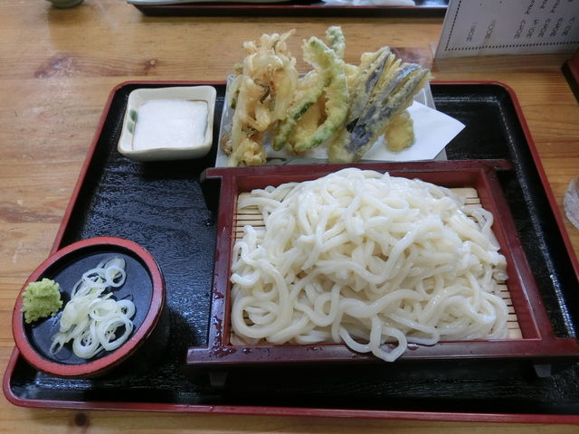 いしかわは前回蕎麦だったので今回は冷やしうどん(大)+野菜天ぷら。