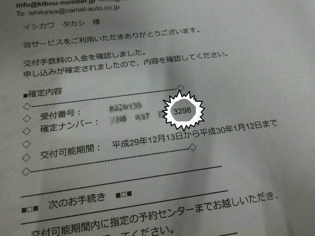 希望ナンバー決まりましたヽ( ´ー`)ノ