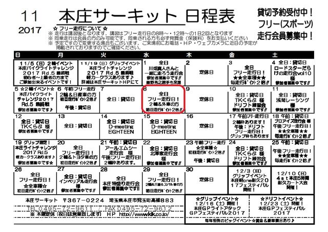 11月は浜名湖のミニディや筑波サーキットのSBoMなどイベント盛りだくさんですね^^