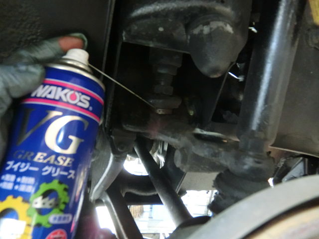 抜けてる右ナックルジョイントにも気休めですがVGふいときます。