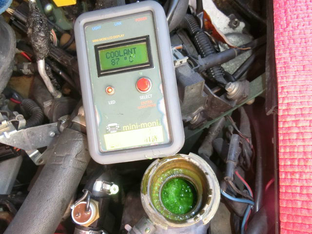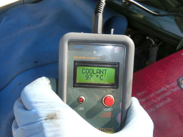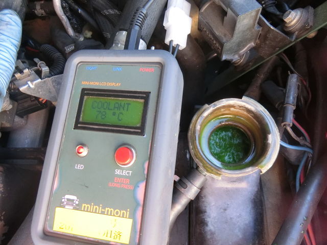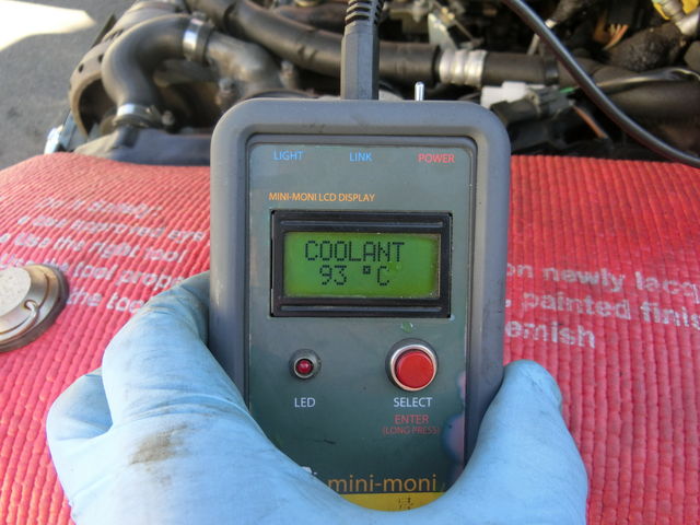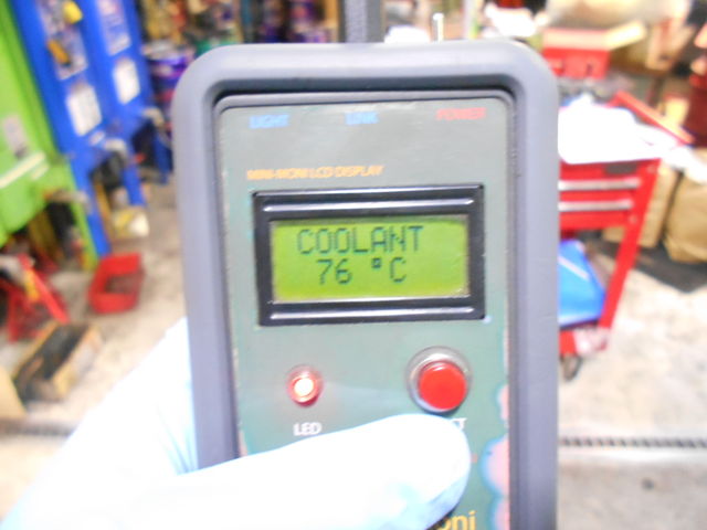 試乗から戻ったばかりなのにこの水温、サーモがしっかり閉じないのが
