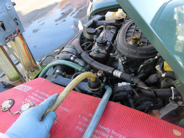 ヒーターコア内の冷却水も入れ替えたいのでバルブは開いておきます。
