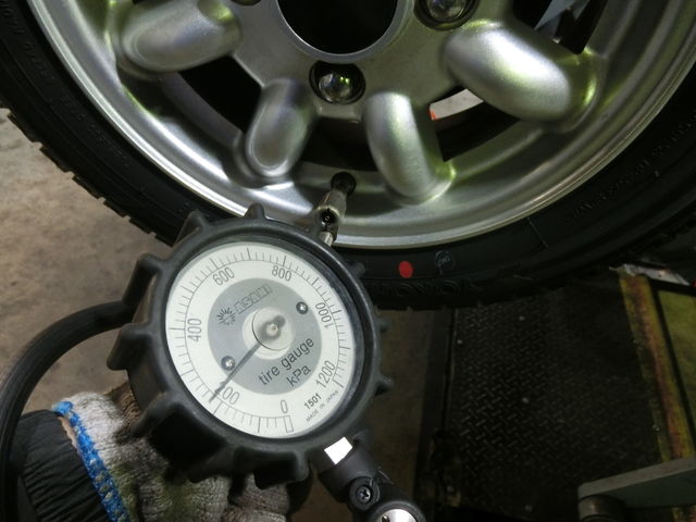 タイヤ空気圧は通常の空気で220kpaに調整しておきました。