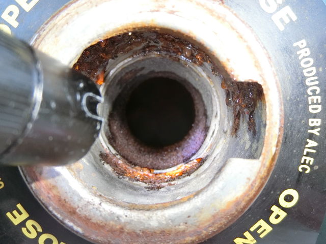ただ、錆というよりは、炭化したガソリンみたいですね。