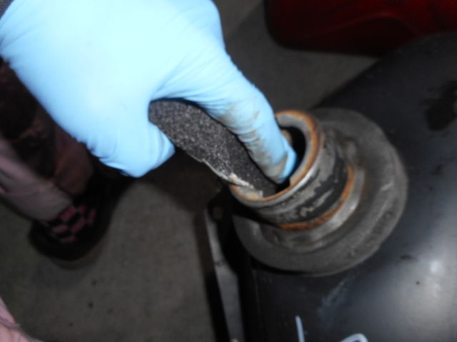 給油口付近の錆は、ペーパーやワイヤーブラシなどを使って磨きましたが、