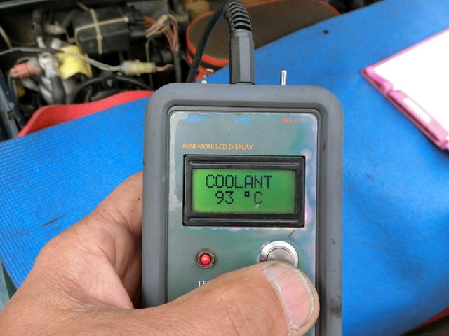 エンジンの水温センサー93℃でラジエターアッパー90℃