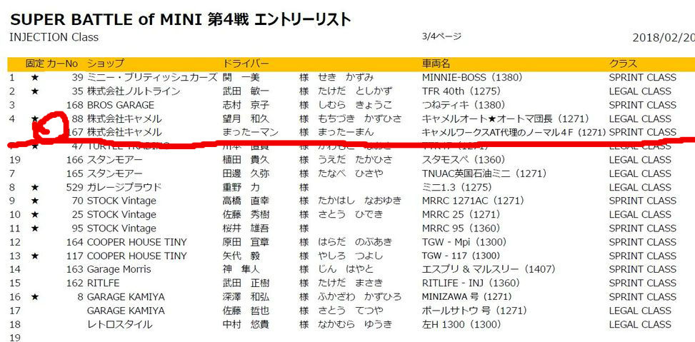 ノーマル4Fの3代目曽根号なんですが、ワークスATの代理なんでスプリントクラスです・・。