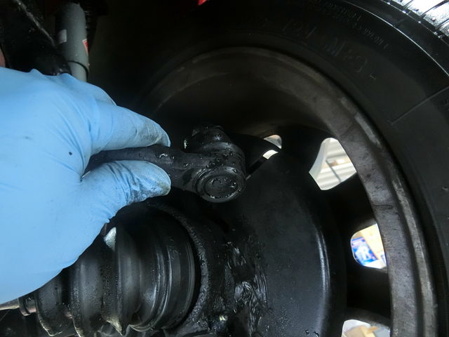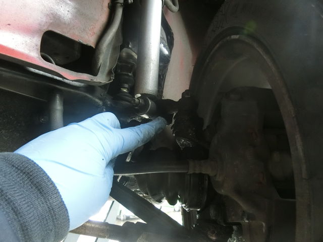 右のタイロッドエンドにも小さなガタがあります。