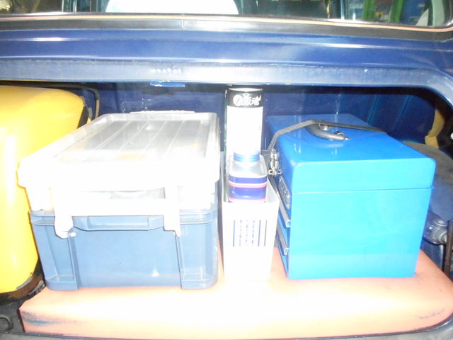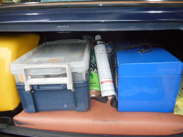 いくら並べても、走行するとオイルの缶やパーツクリーナーが倒れてしまい