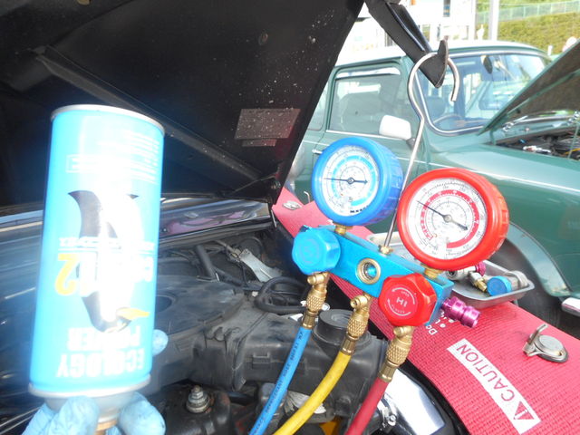 もちろんクーラーガスは、代替フロンよりは従来のR12並みに効く『COLD12』 です。