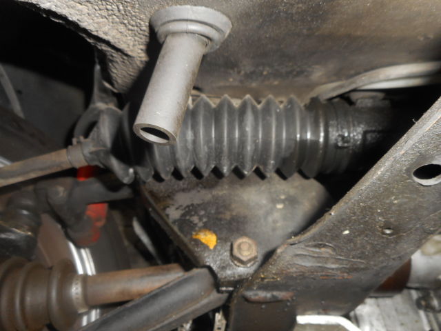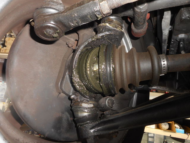 まず目に飛び込んできたのは、ドライブシャフトブーツが外れてます。