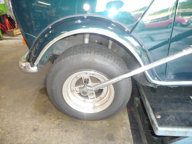 一回転半くらいハイローを伸ばせば、交換前と同じくらいの車高になるのではないかと・・・