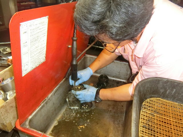お掃除マシーン(洗油が出てくるだけ)でガシガシ洗います。