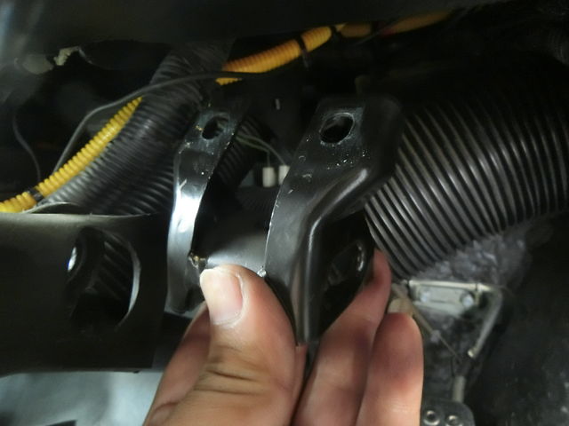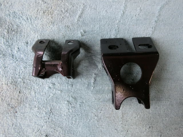 左の純正ブラケットが右の物に変わるのですからかなりステアリングは下がりますね。