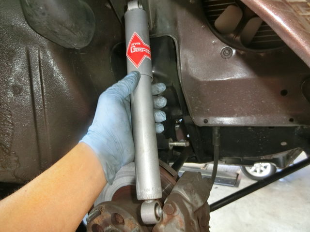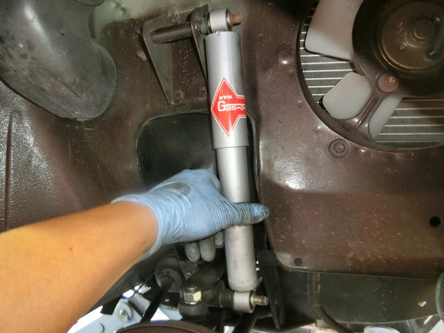 少しでもアッパーアームが下がるように、ショックを外します !