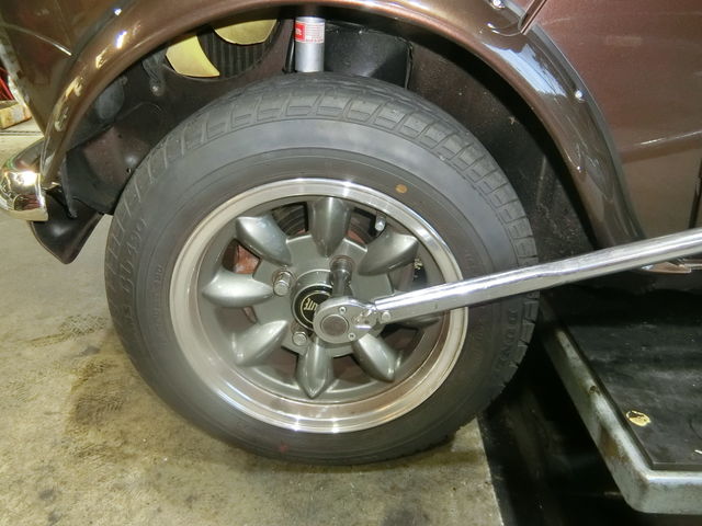作業前と同じくらいの車高にするには、左右とも2回転くらいハイロー